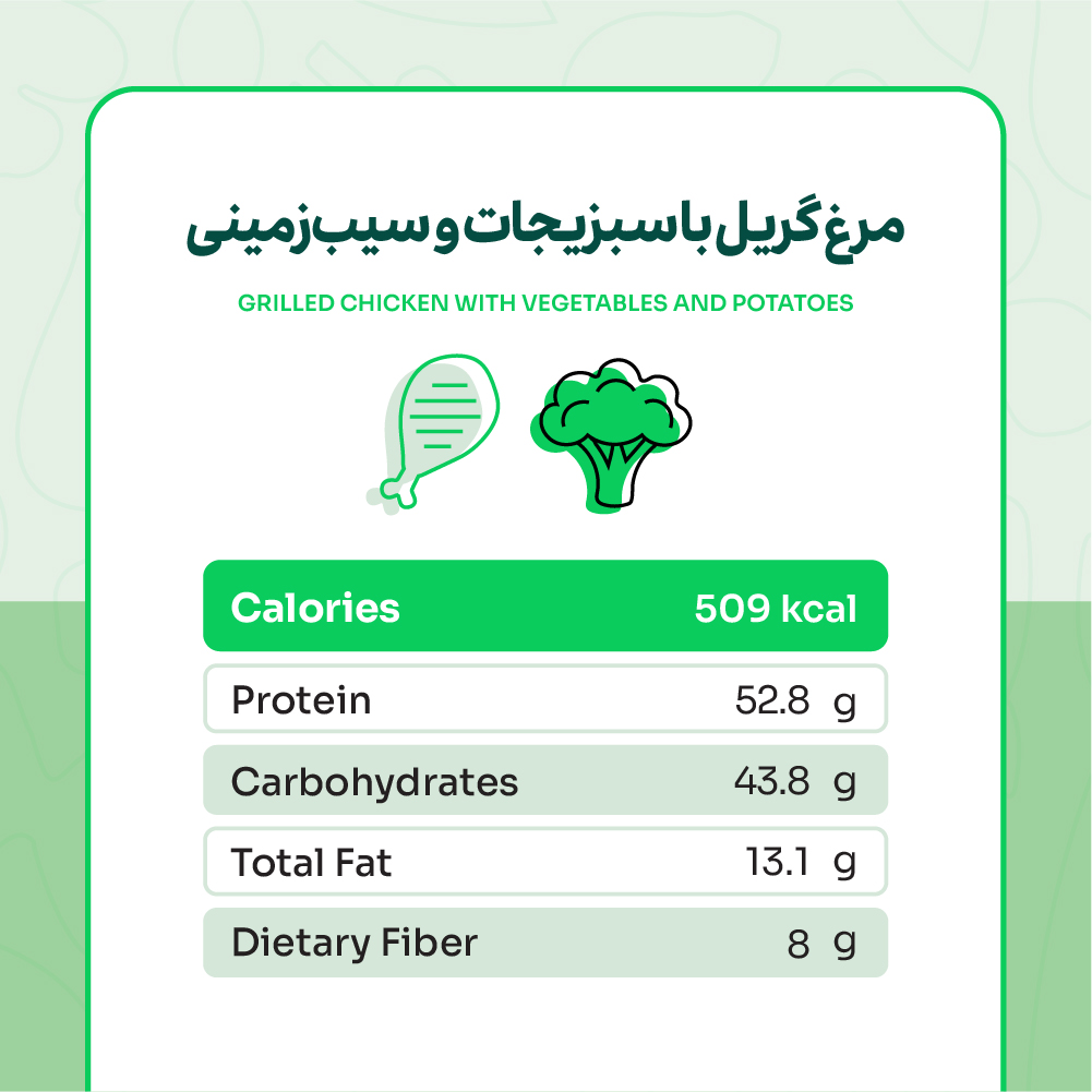 مرغ گریل با سبزیجات و سیب‌زمینی